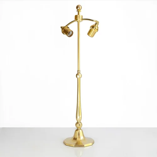 Elegant Danish Art Deco polished brass table lamp with decagon base.