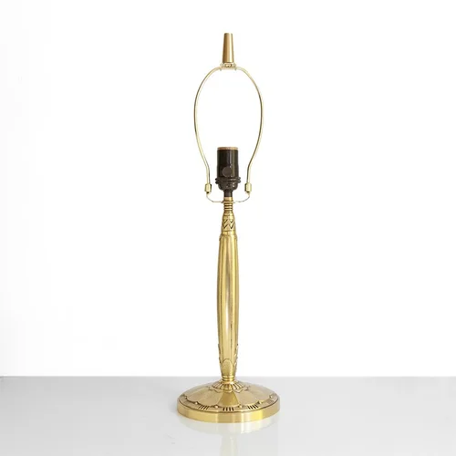 Swedish Art Deco table lamp with brass body on a wood and brass base.